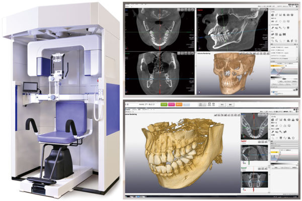 当院ではインプラント治療を受けられる患者様全員にCT検査にて骨の状態(骨の厚み、神経や鼻腔までの距離、骨の形状、骨の質など)を三次元的に確認しています。費用はインプラント料金に含まれており、複数回撮影をしたとしても追加費用は不要です。一般的な歯科レントゲンでは平面的な為、厚みや骨の凹凸などはわかりません。しかし、CTでは様々な角度から三次元的に確認する事ができます。当院で導入しているCTでは、立体的なCG画像で視覚的に顎の骨の状態を患者様ご自身で確認ができます。また、インプラントと神経や血管等の重要な臓器との位置関係も0.01mm単位まで精密に計測する事が可能です。このようなCT検査結果をもとに、患者様が納得し安心してお受けいただけるようなインプラント治療計画を立案・提供しております。